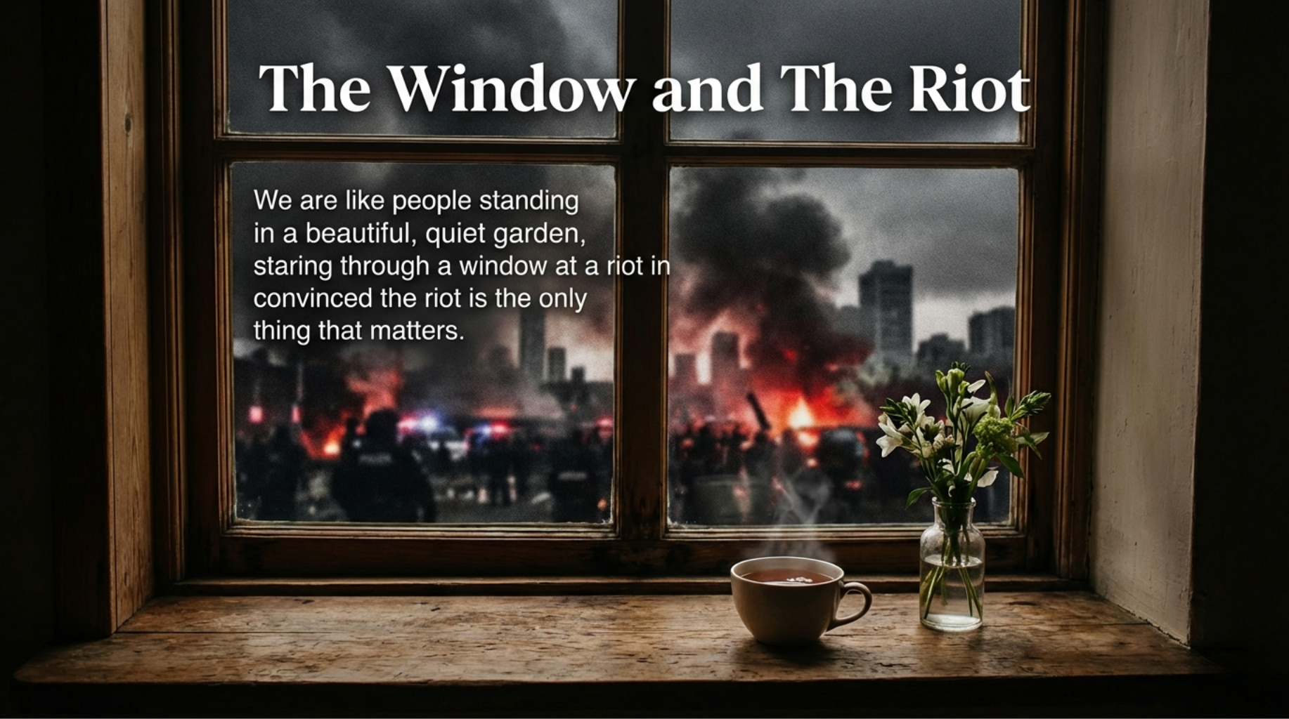 The danger of this gravity well is that it makes our immediate reality seem thin and unimportant. It suggests that the "real" battle is happening elsewhere, and that our only role is to watch, to tweet, and to take sides in a drama we can’t actually influence. We are like people standing in a beautiful, quiet garden, staring through a window at a riot in another city, convinced that the riot is the only thing that matters. We have become so preoccupied with the noise coming from across the border that we have forgotten how to hear the silence—or the needs—of our own neighbourhoods.